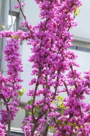 倉鹿の春海の家みたいに、春にはピンクのハナズオウ。