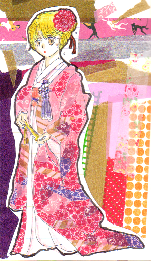 背景&髪の花飾りと着物柄はマスキングテープです。