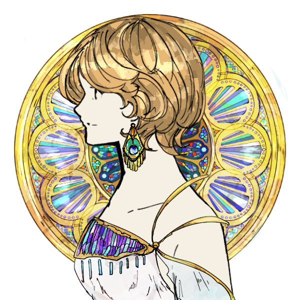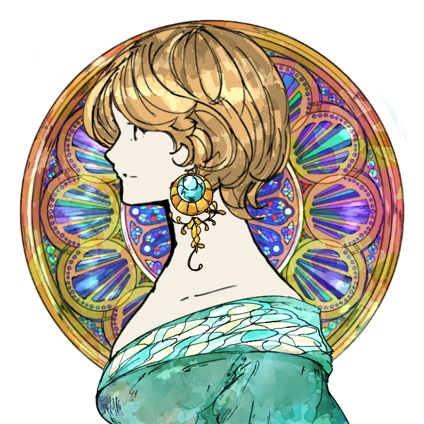 今はスキャナも使えない状態なので(機械は生きているのにOSがなまじ最新のせいで使えない。もったいない)自作絵はもう諦めましたが、ミュシャ風メーカーというものを発見したので、だいたいこんなイメージという画像だけでも今さら作ってみました。