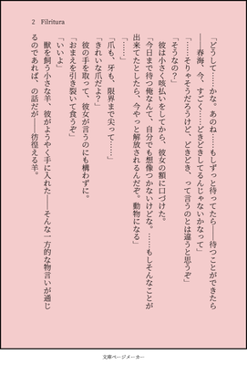 面白そうなツールを発見、すぐ試してみた。 私の手元には多少まだ話の続きはありますが、どのみちオチてはいないので「単なる画像サンプルね~」ぐらいにスルーして下さい。 文庫ページメーカー(今回はこれ) SS名刺メーカー 折り本メーカー(以前紹介した8P折り本と仕組みは同じ) おまけ文庫「チャイカとデルフィン」全7ページ https://blog.cnobi.jp/v1/blog/user/c2e29e959eec74b548d7fe56be210503/1517201967 ZIP形式なので圧縮&解凍ファイルが必要です。 私は「Lhaforge」というソフトを使っています。 凍りつくように寒い日々です。 大阪ですら昨日は中心部で雪が降りました。 何も私が外出した時に、しかも駅から外へ出た瞬間に降らなくてもいいのに……ああそうですか、日頃の行いが悪いのか。 ● コメントフォーム |
